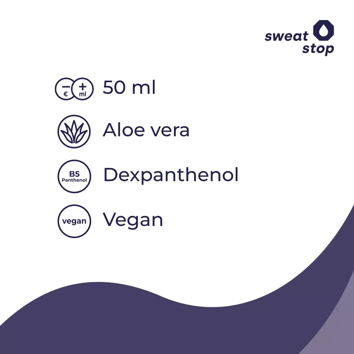 Le SweatStop® Antitranspirant Aloe Vera Forte Roll-On est le produit idéal pour les aisselles si vous subissez une transpiration abondante même avec un léger effort. Il offre une solution fiable qui garantit d’être sans transpiration, vous permettant de vous sentir frais, confiant et en sécurité.