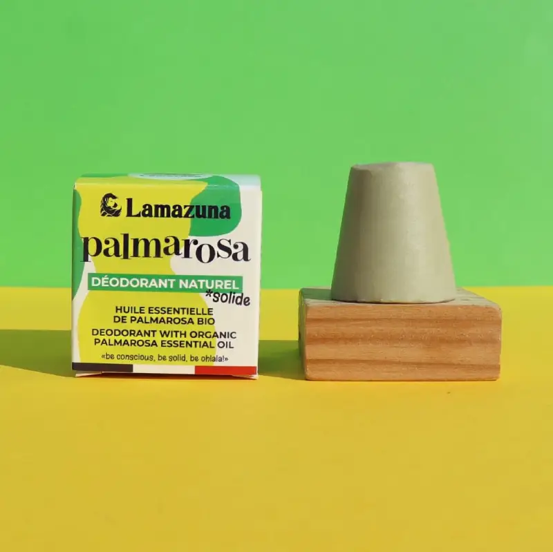 L’huile essentielle de palmarosa (Cymbopogon martini oil*) grignote les bactéries. C’est grâce à elle que notre déodorant est aussi efficace !
