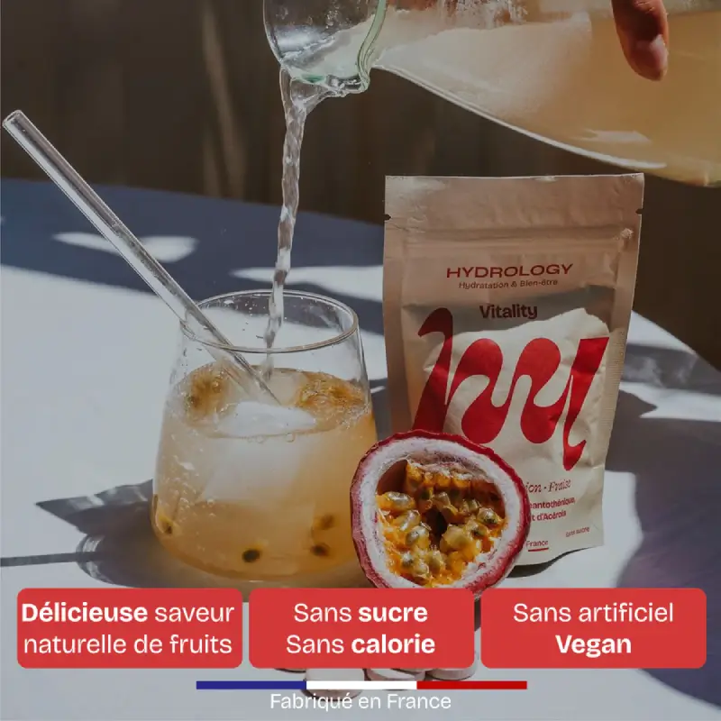 Hydrology Vitality est une boisson fonctionnelle qui combine un goût délicieux de fruit de la passion et de fraise avec une formule spécialement conçue pour maintenir un niveau de forme et d’énergie optimal. Chaque bille effervescente enrichit votre eau avec des micronutriments ciblés.