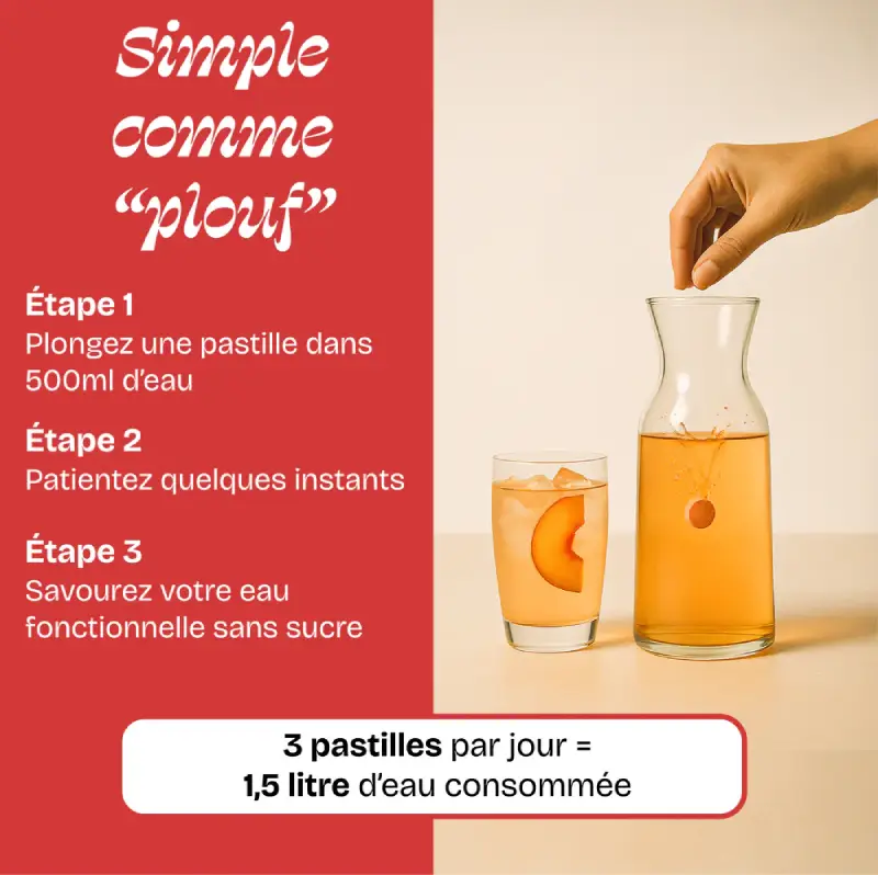 - Compatibilité : Peut être mélangé à de l’eau pétillante en diluant la bille dans un fond d’eau plate au préalable.